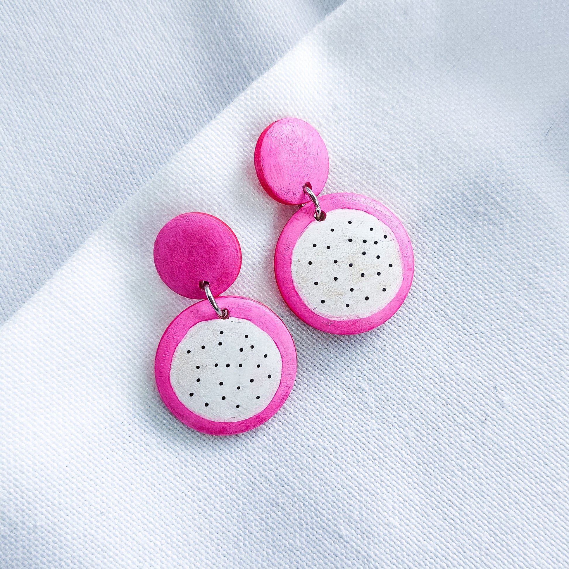 Transforme seu estilo com estes brincos exclusivos de pitaya e leve um pedacinho do paraíso tropical consigo.