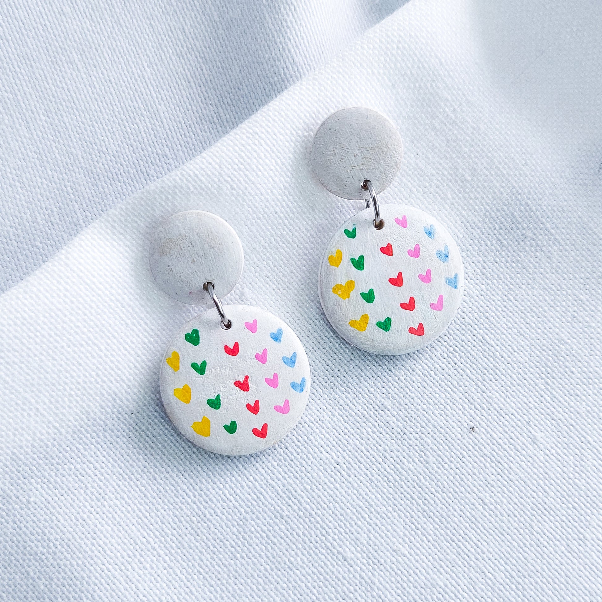 Adicione um toque de charme e alegria ao seu visual com estes exclusivos brincos de pequenos corações coloridos!
