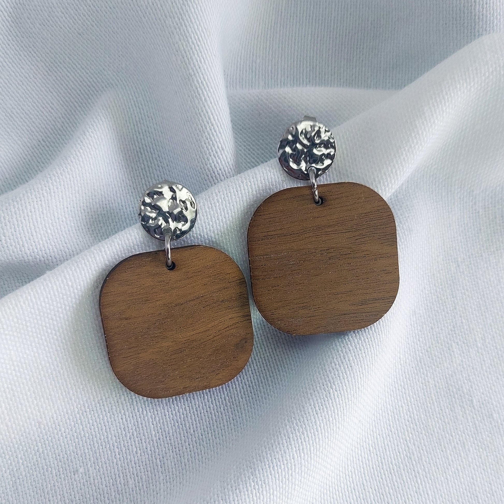 Ideais para complementar tanto looks casuais quanto produções mais sofisticadas, estes brincos unem a beleza orgânica da madeira ao design moderno, tornando-se uma escolha versátil para qualquer ocasião.