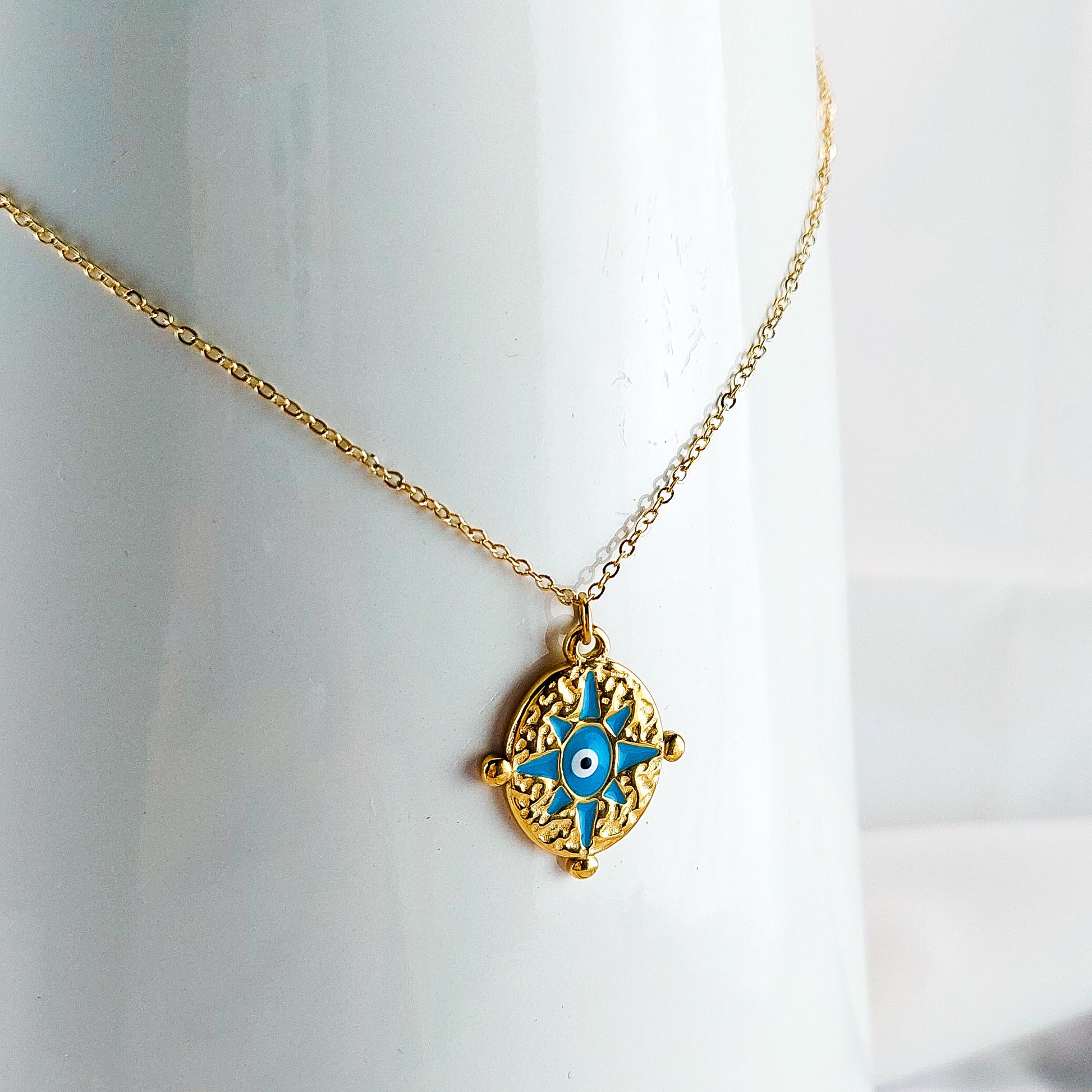Colar de Aço Inoxidável com Olho Turco - Ouro