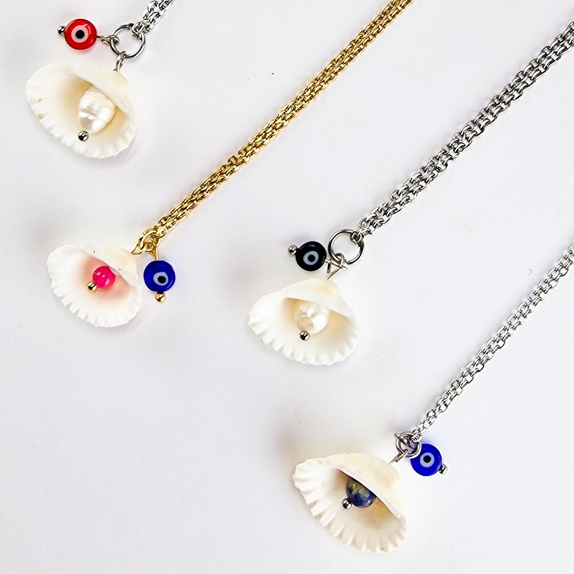 Descubra a elegância e o frescor da nossa coleção Blue Bay. Cada colar é uma celebração da beleza natural, combinando a sofisticação do aço inoxidável com o charme das conchas naturais.