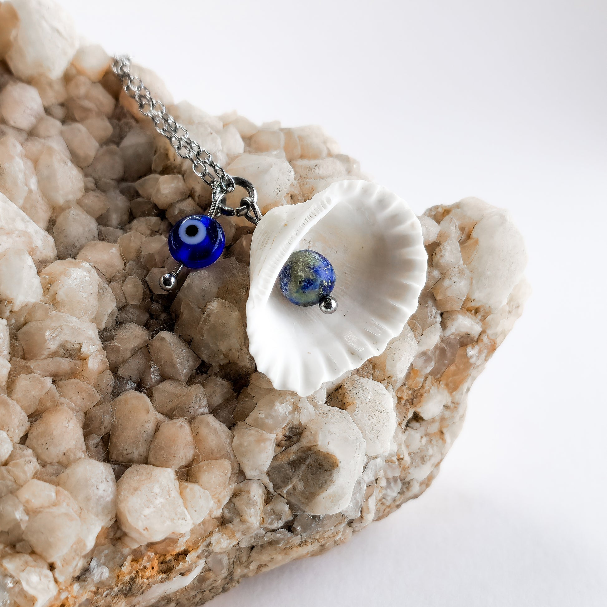Descubra a elegância e o frescor da nossa coleção Blue Bay. Cada colar é uma celebração da beleza natural, combinando a sofisticação do aço inoxidável com o charme das conchas naturais.
