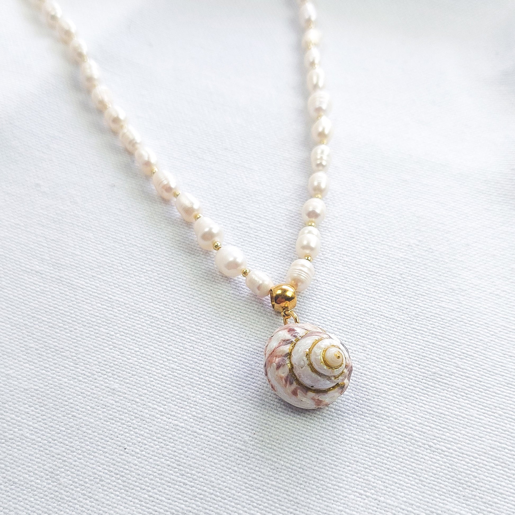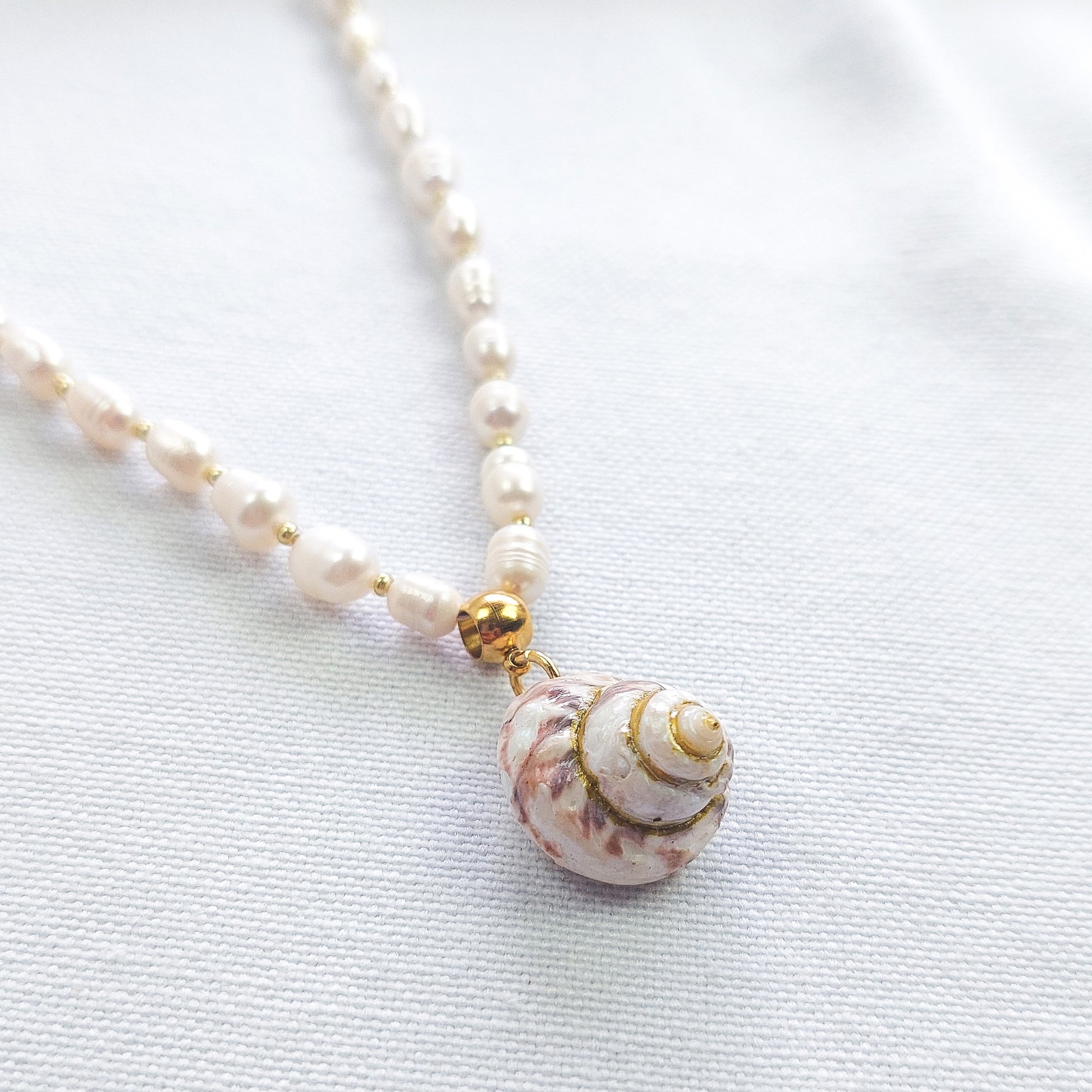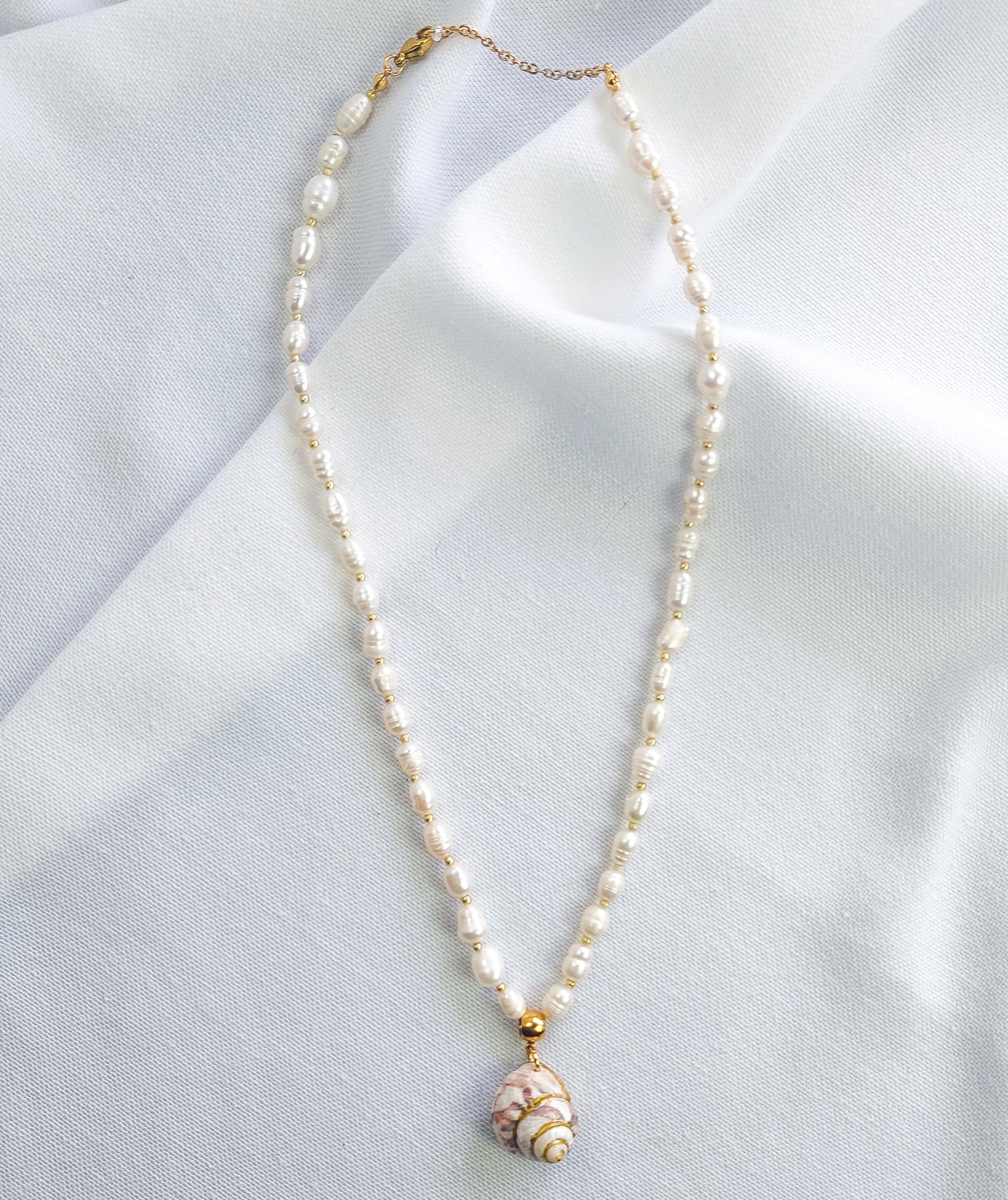 Este colar é cuidadosamente elaborado com pérolas naturais de água doce, realçadas por um pendente de concha natural, resultando numa joia verdadeiramente singular. A natureza dos materiais utilizados garante que não existem duas peças iguais, tornando o seu colar absolutamente exclusivo. Os detalhes metálicos são feitos em aço inoxidável dourado, garantindo durabilidade, resistência e um brilho elegante que complementa perfeitamente os elementos naturais.