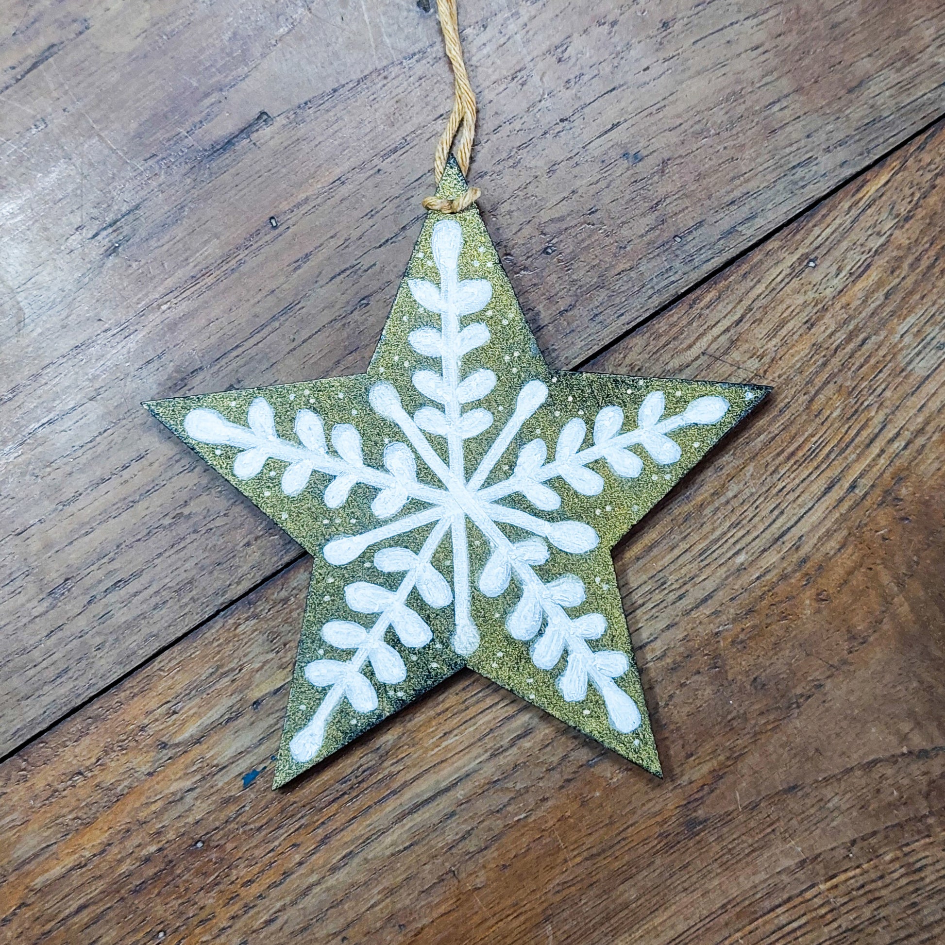 Ornamento de Natal Pintado à Mão - Estrela - Floco de Neve