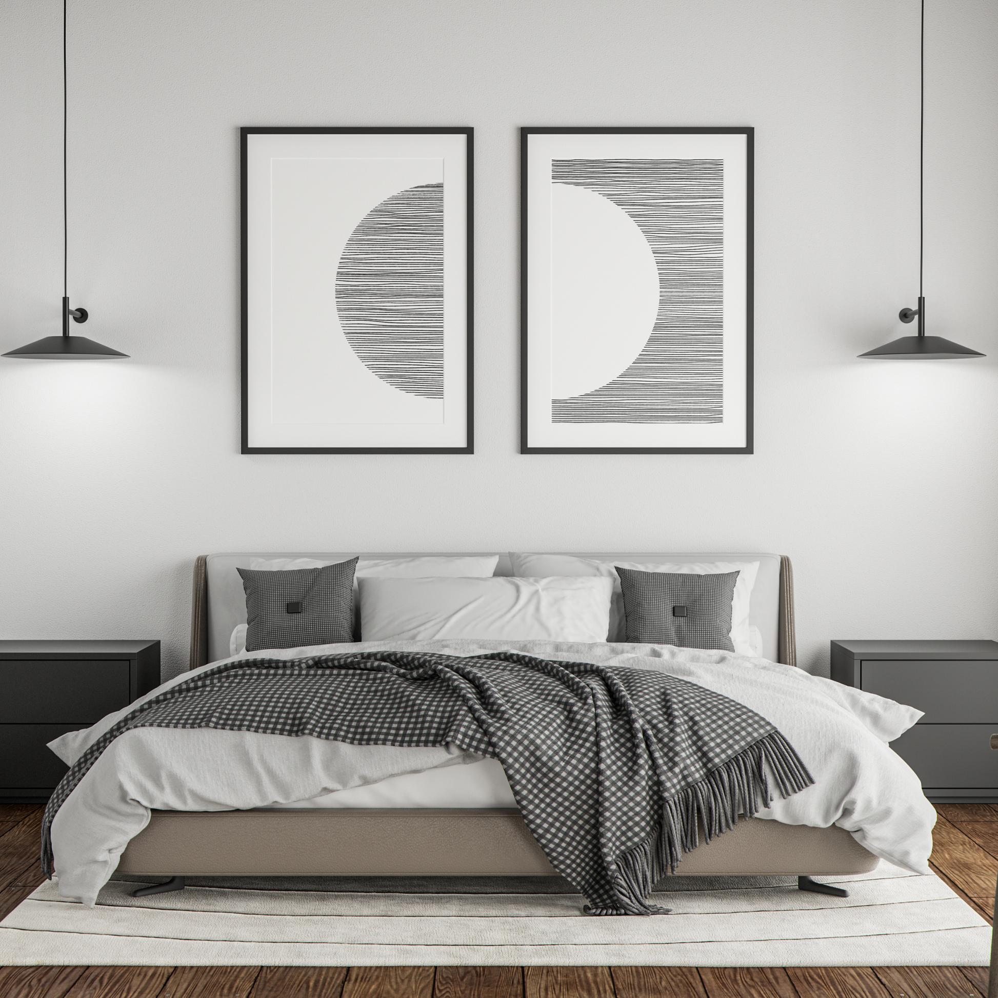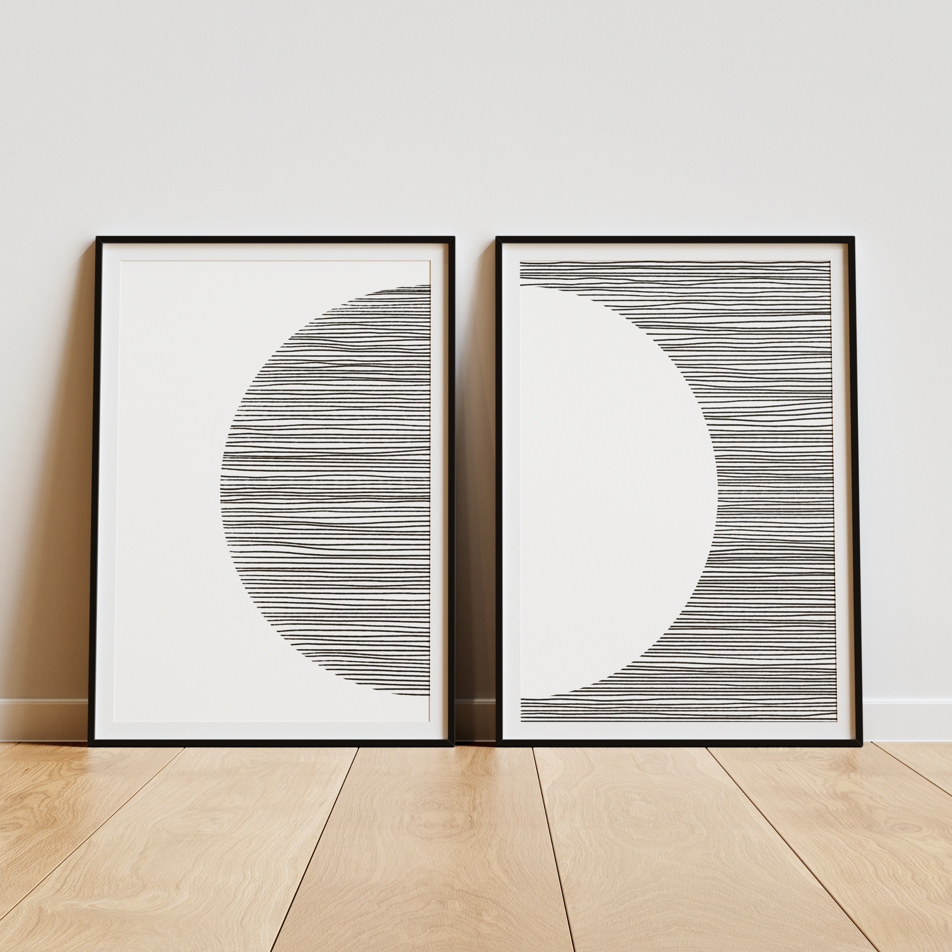 Descubra duas obras de arte de simplicidade e elegância, destacando-se pela beleza dos seus motivos abstratos em preto sobre branco. Com um design minimalista e sofisticado, elas são perfeitas para quem procura adicionar um toque de sofisticação ao seu espaço.
