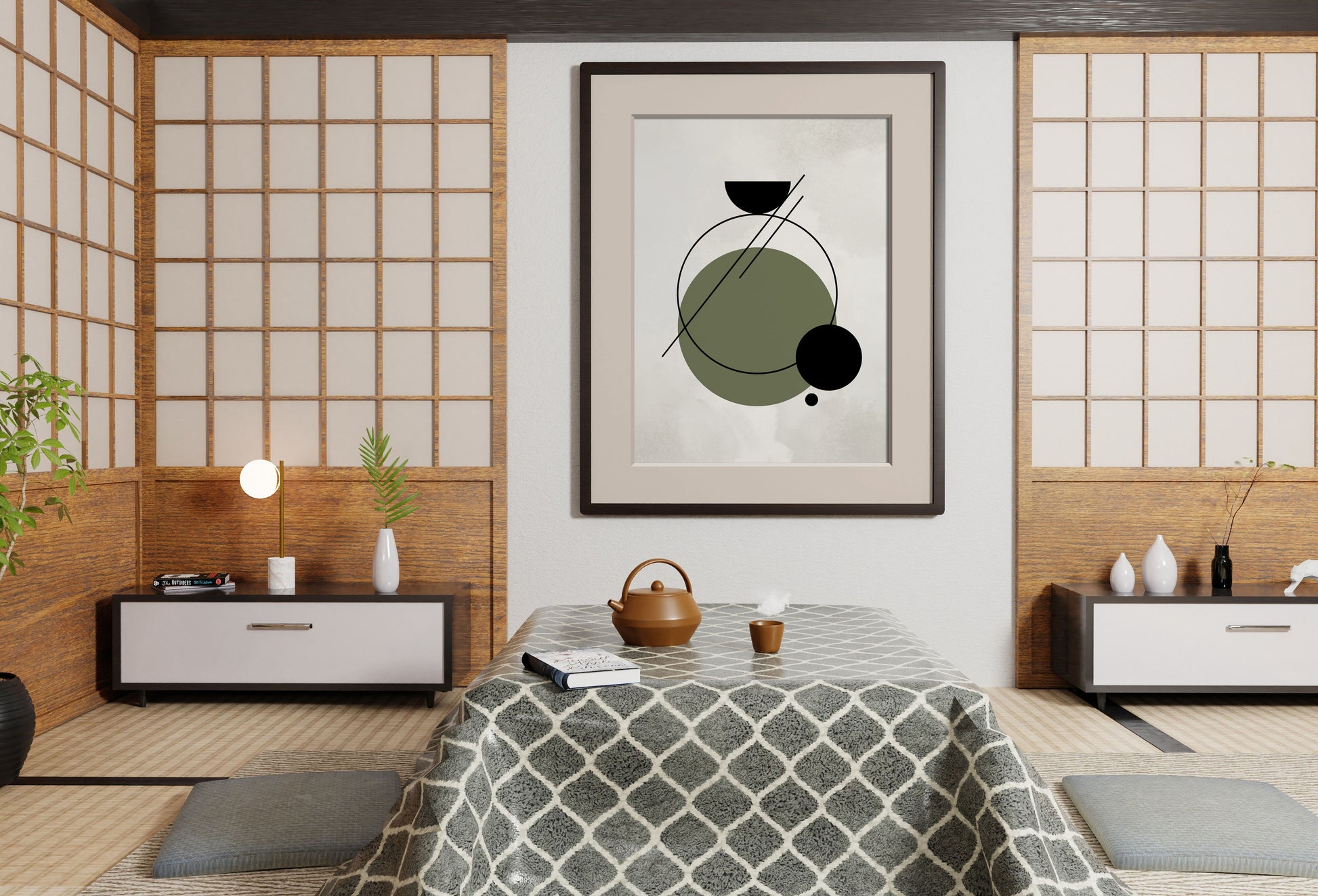 Encontre uma obra de arte que combina simplicidade e elegância, destacando-se pela beleza dos seus motivos geométricos em preto e verde. Com um design moderno e sofisticado, é perfeita para quem procura adicionar um toque de contemporaneidade ao seu espaço.
