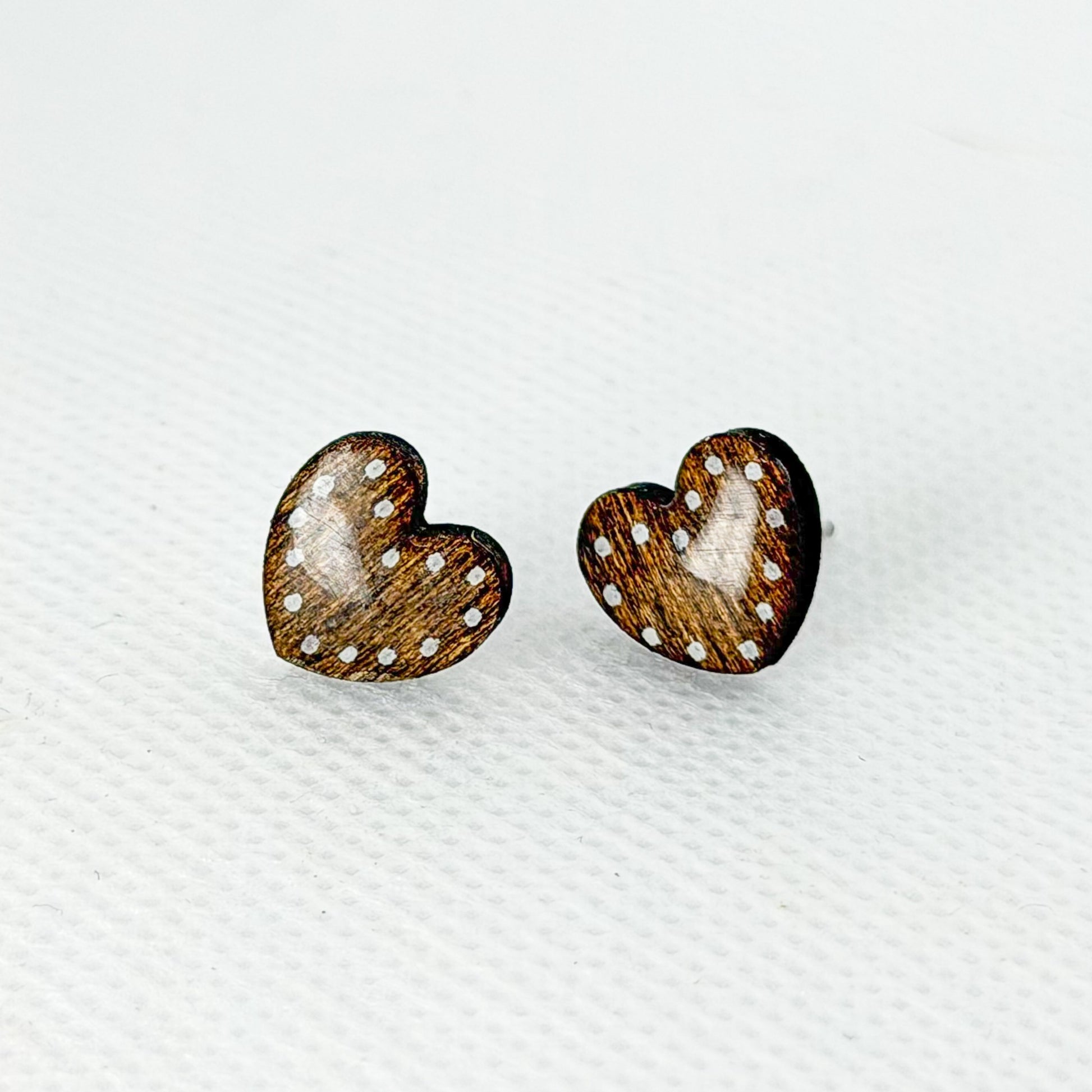 Brincos Coração de Madeira - Bolinhas